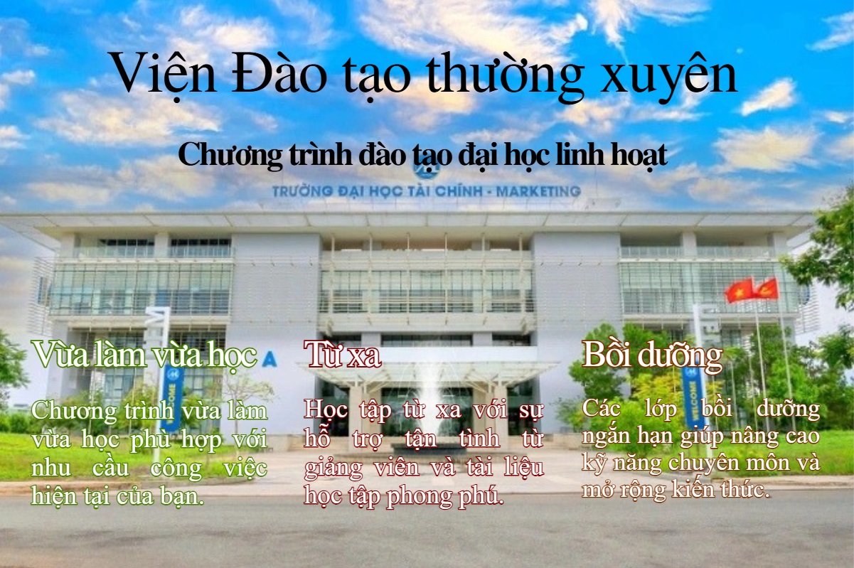 Với bề dày truyền thống và thành tích đã đạt được, Viện Đào tạo thường xuyên thuộc Trường Đại học Tài chính - Marketing tiếp tục khẳng định vị thế, vai trò là đơn vị nòng cốt trong chiến lược đào tạo mở rộng, thực hiện sứ mệnh “Giáo dục cho mọi người, học tập suốt đời”.
